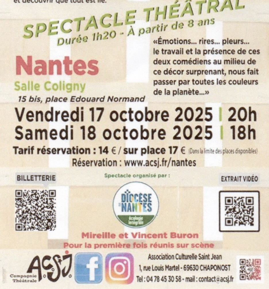 Rendez-vous salle Coligny, à Nantes, Place Edouard Normand, ce vendredi 17 octobre à 20h et ce samedi 18 octobre, à 18h. Comme son nom l’indique, le spectacle sera en prise avec les questions fondamentales du monde d’aujourd’hui en dialogue avec la Bible.